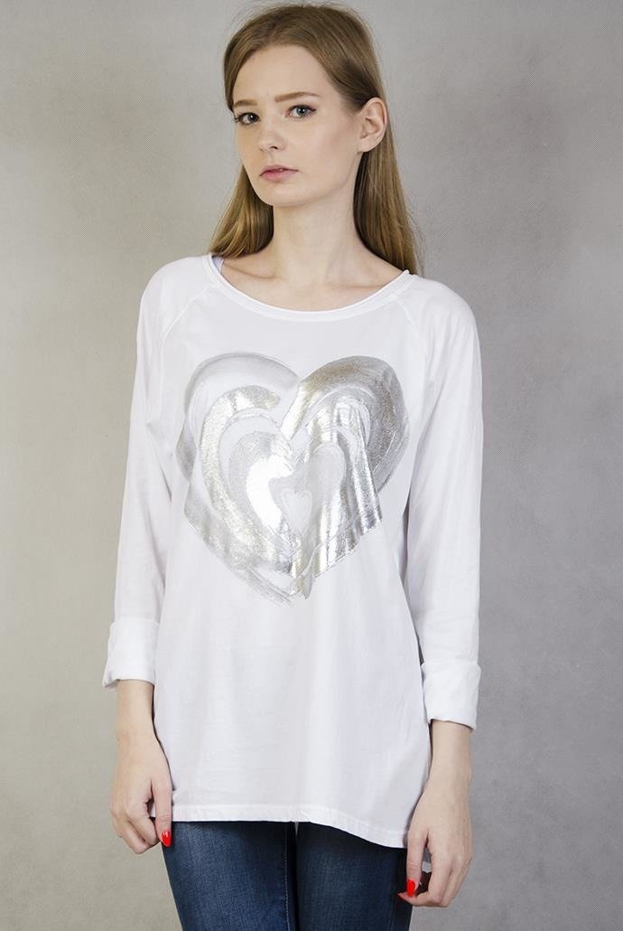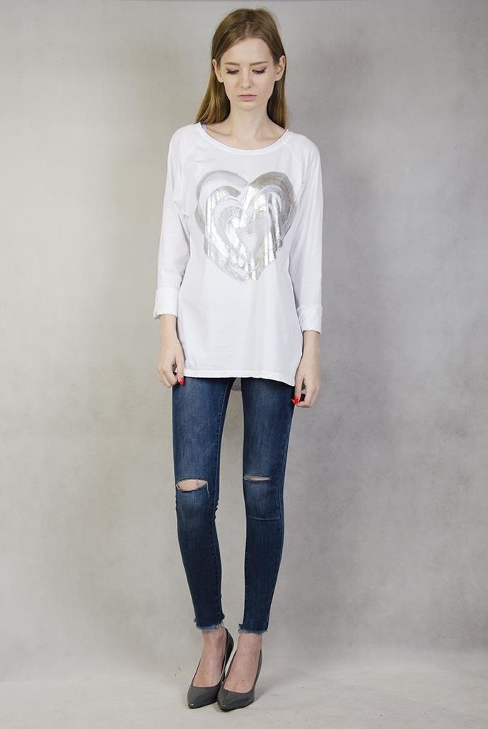 Biała bluzka ze srebrnym sercem