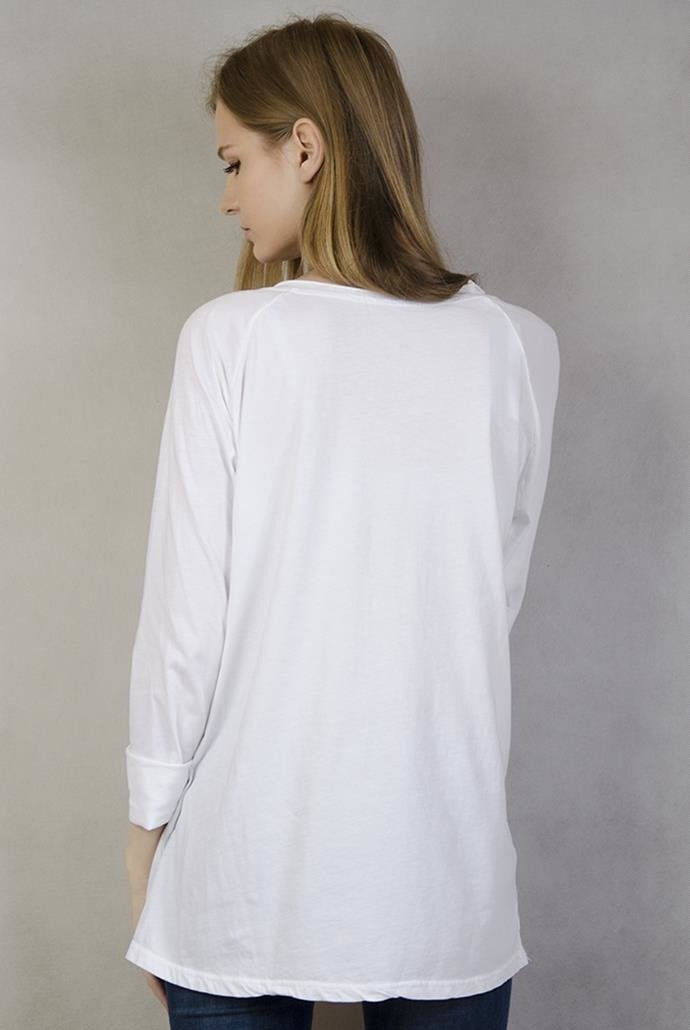 Biała bluzka ze srebrnym sercem, tył przedłużany