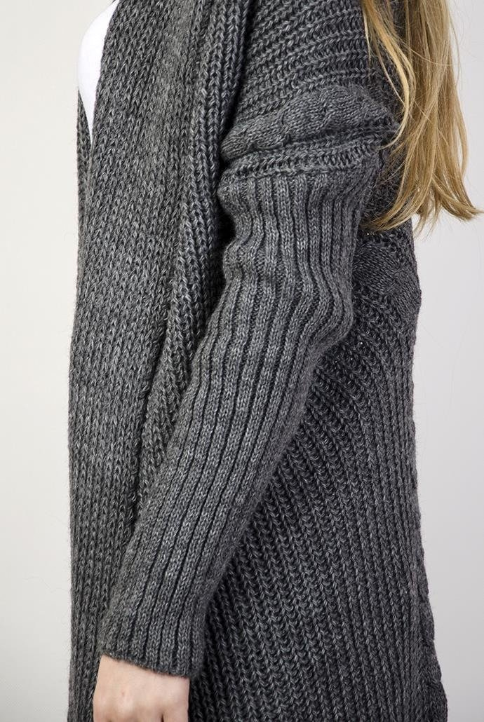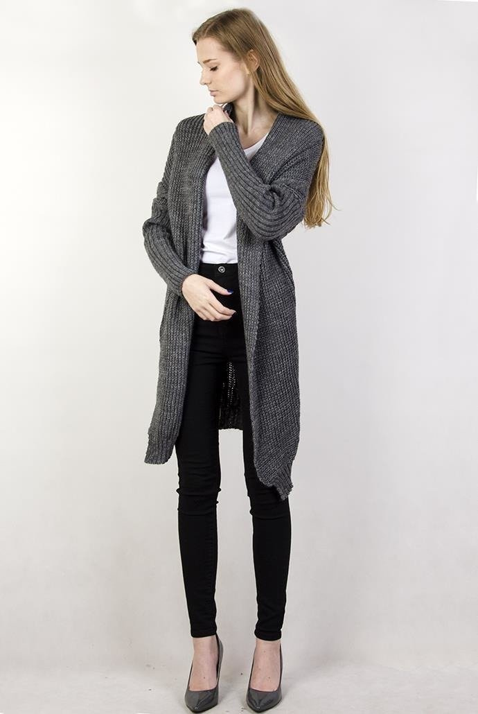 Ciemnoszary sweter kardigan z wywijanym kołnierzem