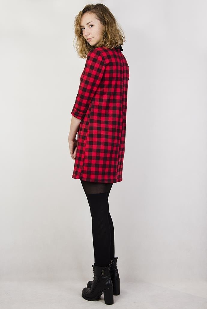 Sukienka w kratę z czarnym kołnierzykiem