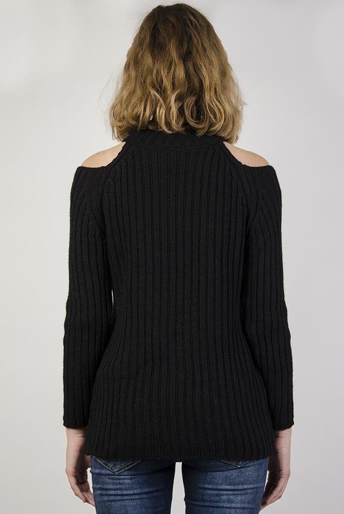 Sweterek z odkrytymi ramionami i golfem, na długi rękaw