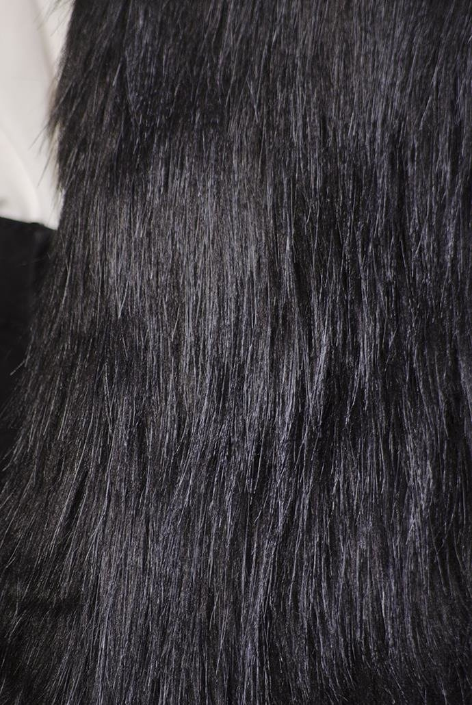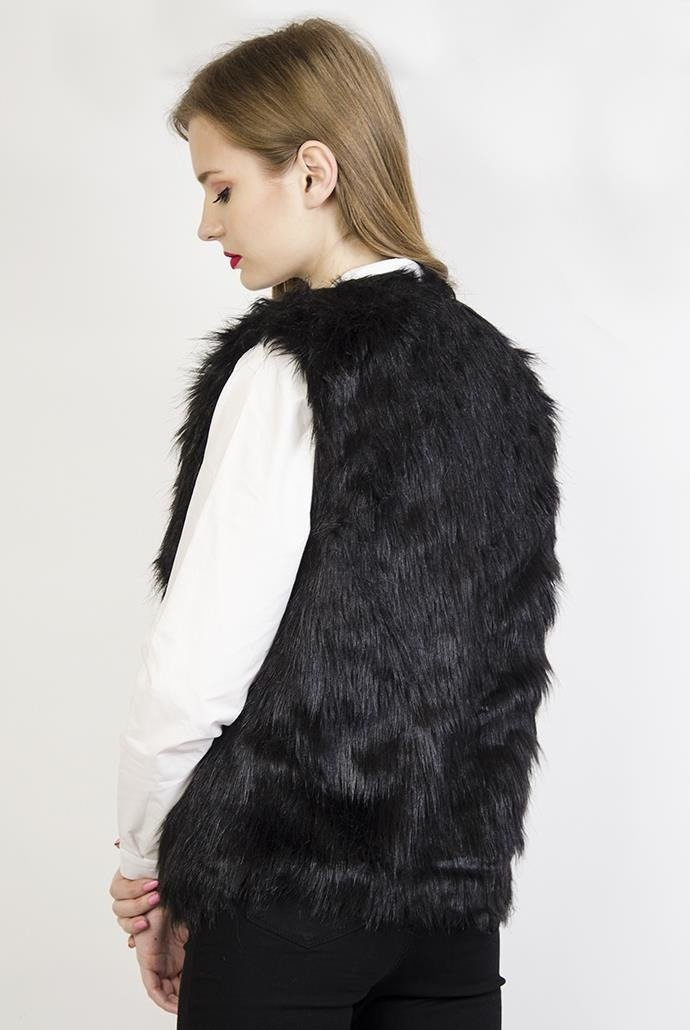 Czarna, włochata kamizelka