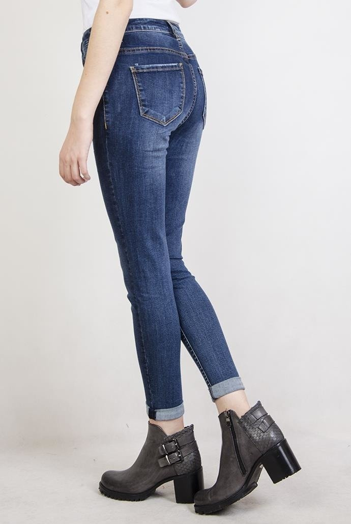 Jeansowe spodnie przylegające o klasycznym kroju.
