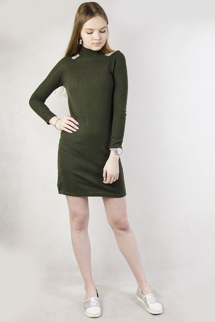 Zielona sukienka z wycięciami przy ramionach, przylegająca