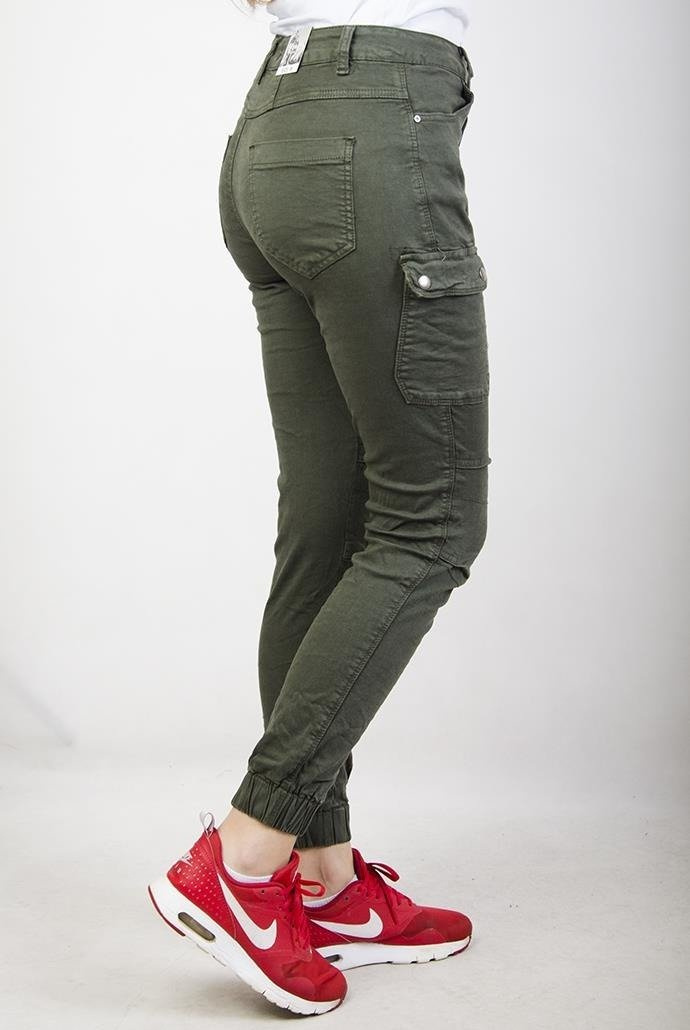 Khaki spodnie joggery z kieszenią z boku