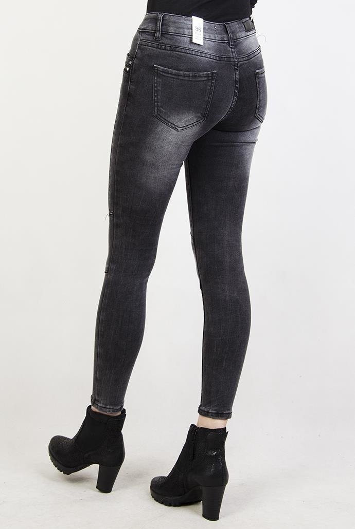 Szare spodnie rurki jeansowe z zamkami i przeszyciami