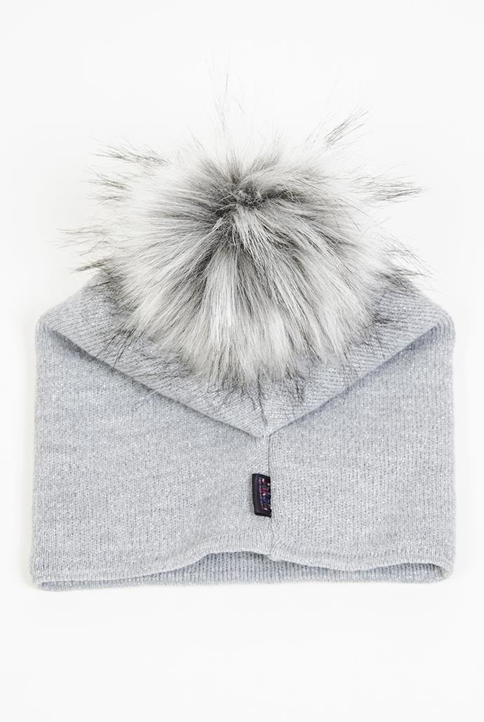 Szara czapka z wszywką z serduszkiem i pomponem.