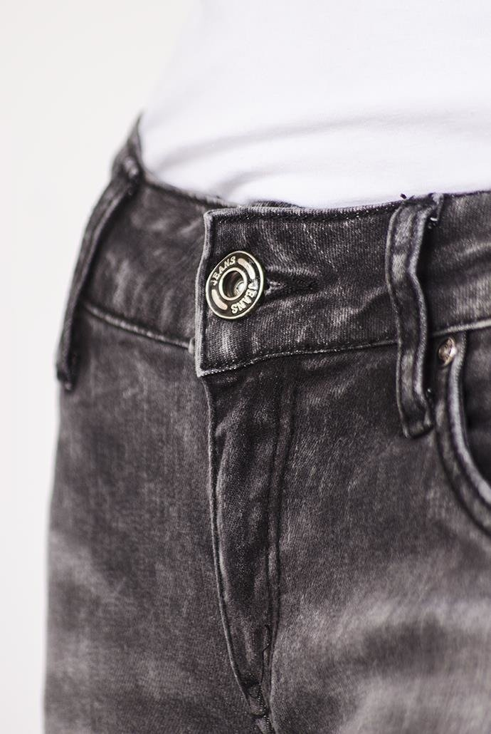 Szare spodnie jeansowe z ćwiekami i wycięciem
