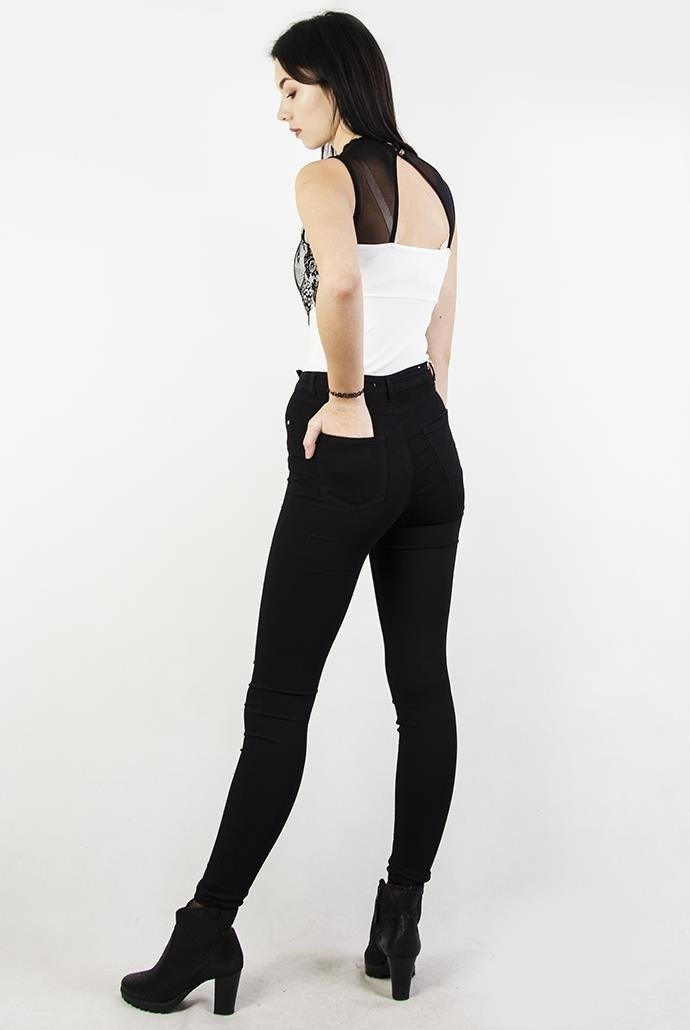 Białe body z wycięciem z tyłu oraz koronkowym zdobieniem z przodu. Z tyłu zapinane na guzik.