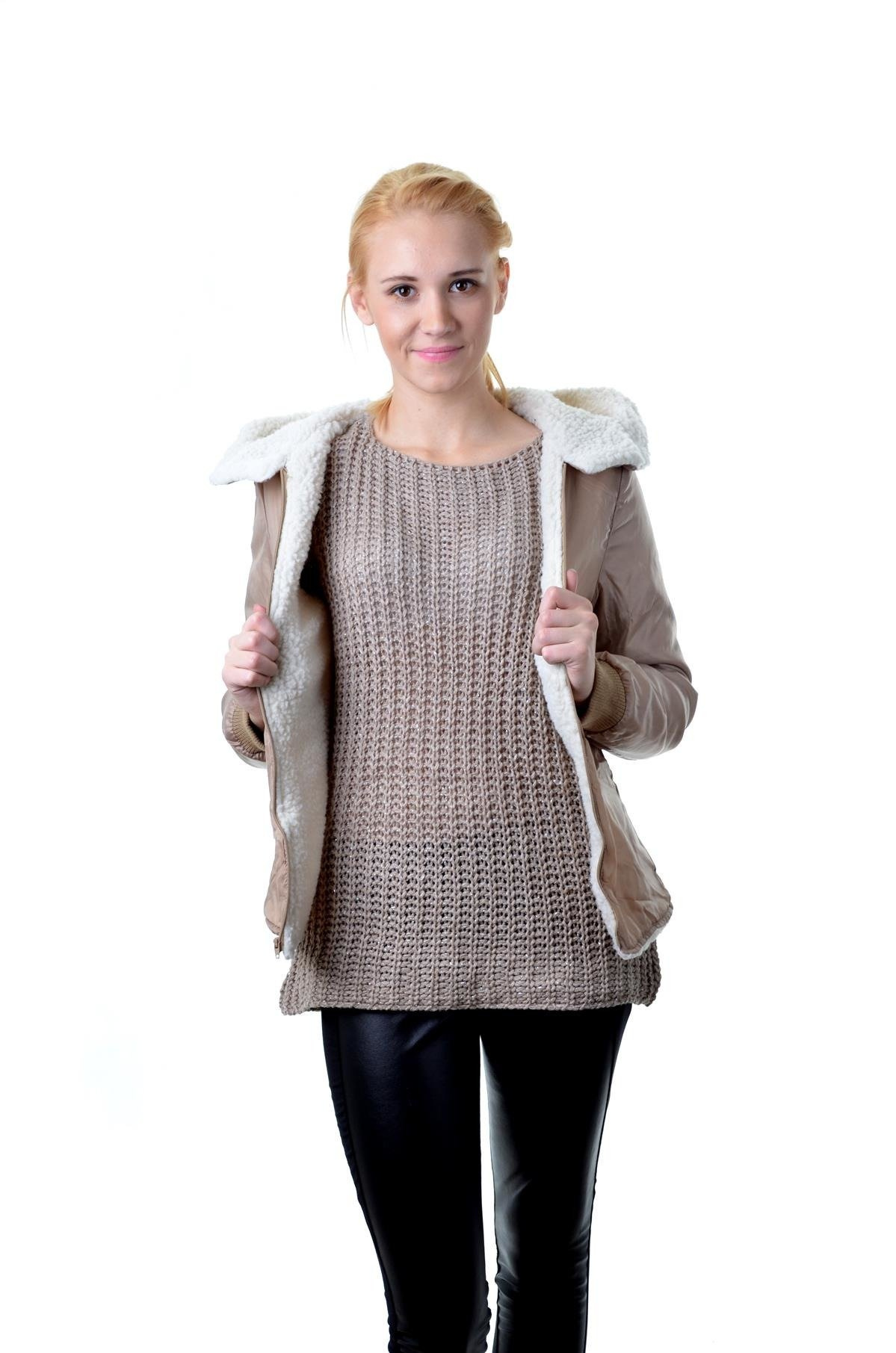 Dłuższa ciepła kurtka 2w1, z kapturem wykończonym futerkiem oraz ciepłym podszyciem, z możliwością jego odpięcia . Kurtka idealna na zimę, jak i na jesień po odpięciu podszycia .