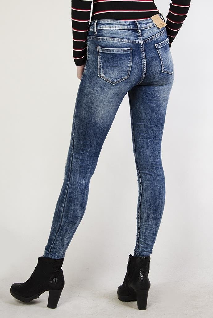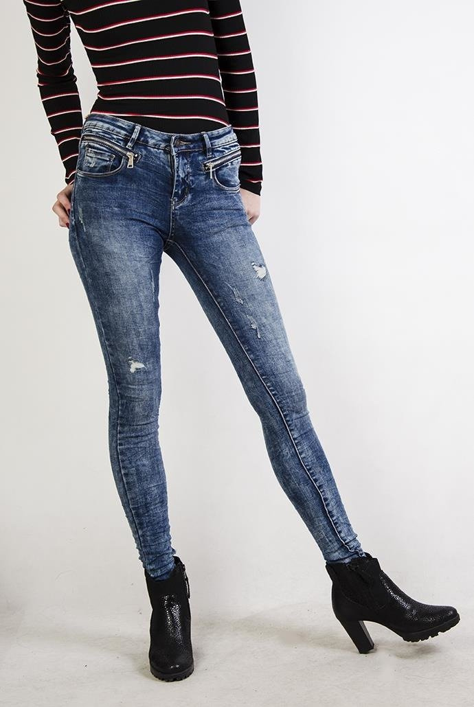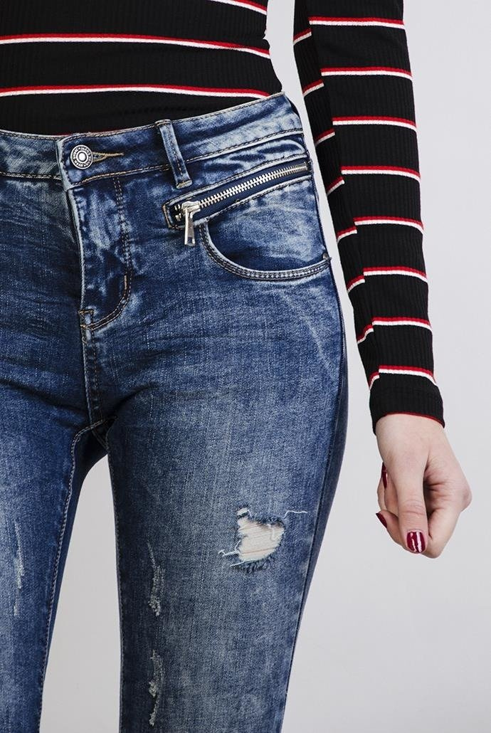 Spodnie jeansowe z zamkami, pogniecione przy nogawkach