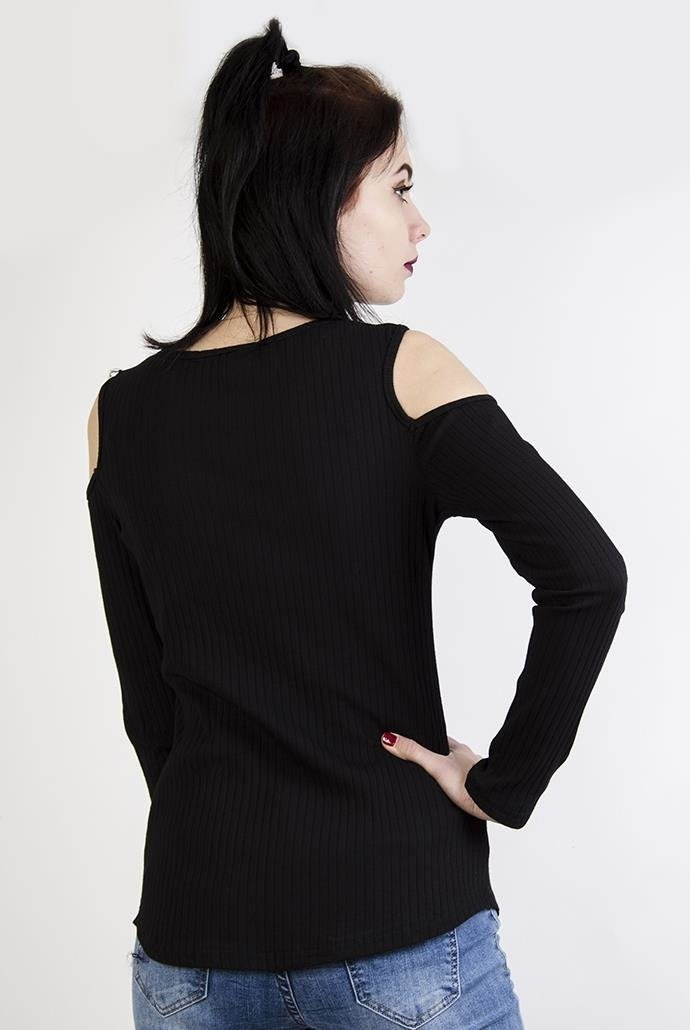 Czarna prążkowana bluzka z wycięciami na ramionach