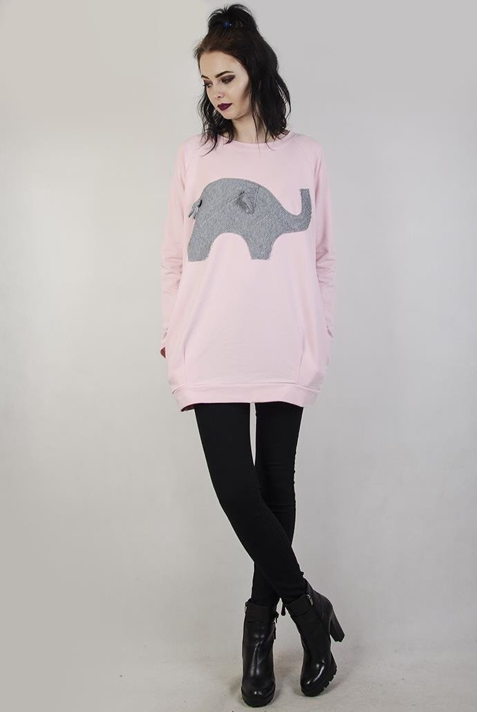 Jasnoróżowa bluzka z szarą naszywką słoniem.