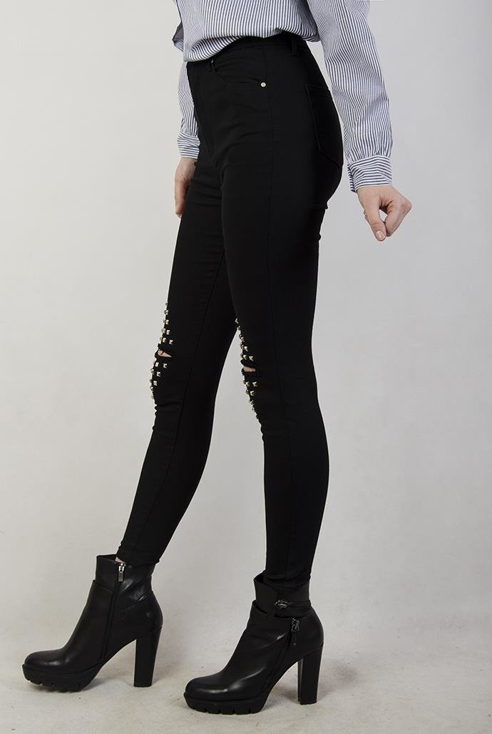 Czarne spodnie skinny jeans z ćwiekami i dziurami