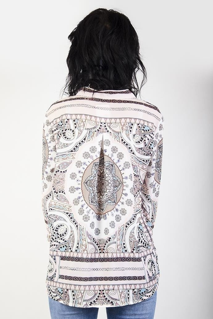 Wzorzysta bluzka z wiązaniem przy szyi