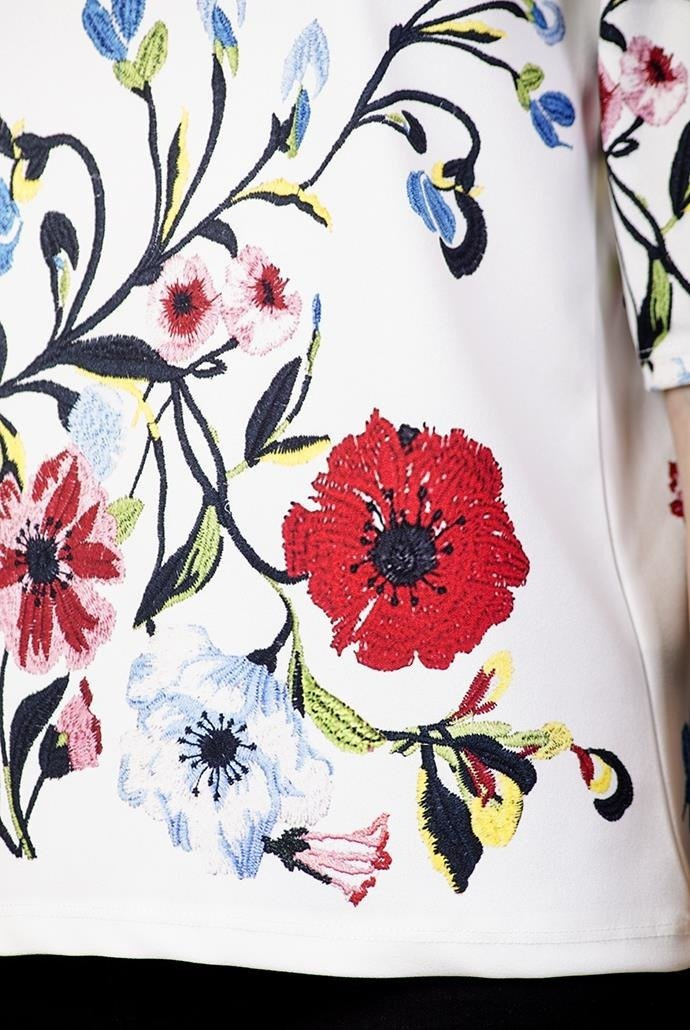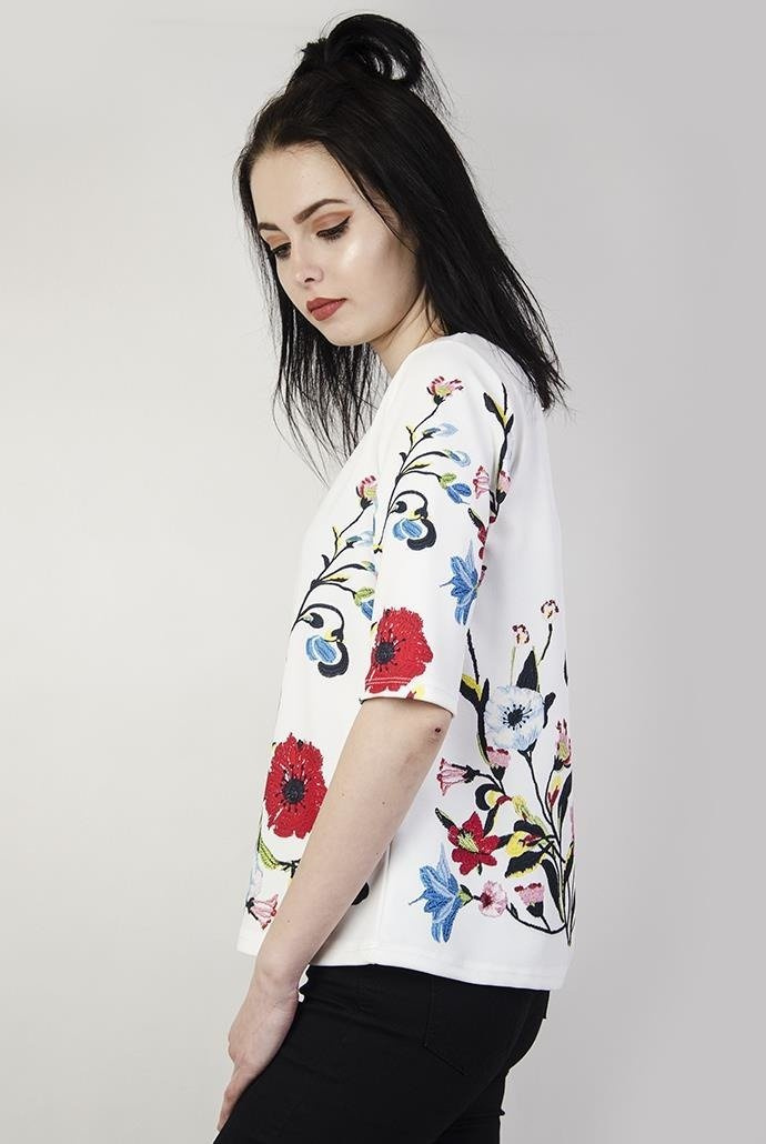 Biała bluzka w kwiatowe wzory, z zamkiem z tyłu.