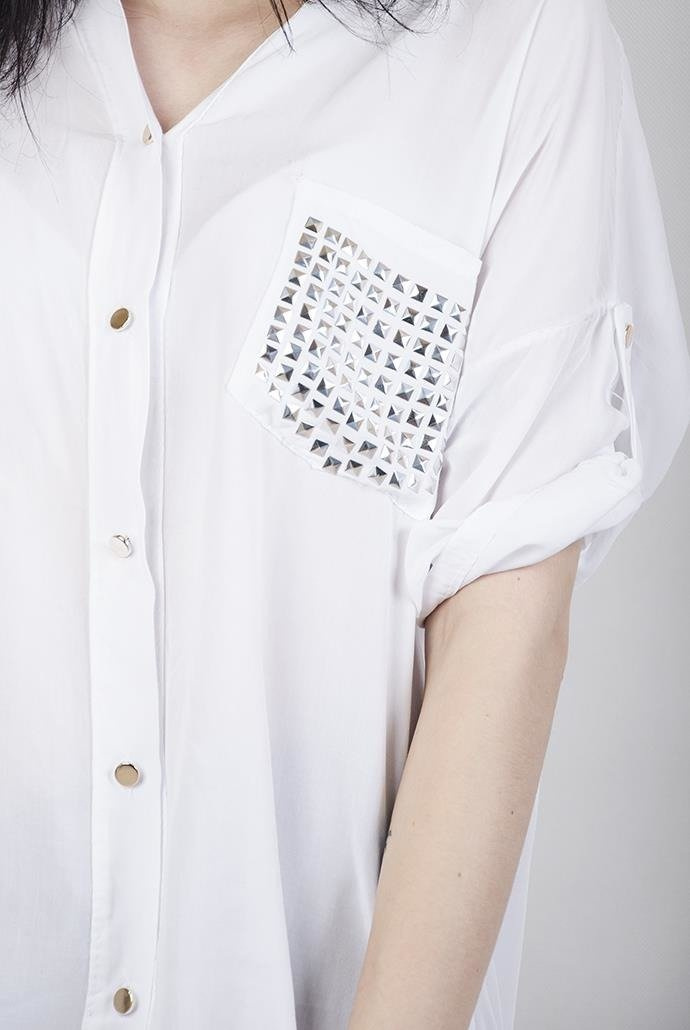 Biała koszula z ćwiekami na kieszonce