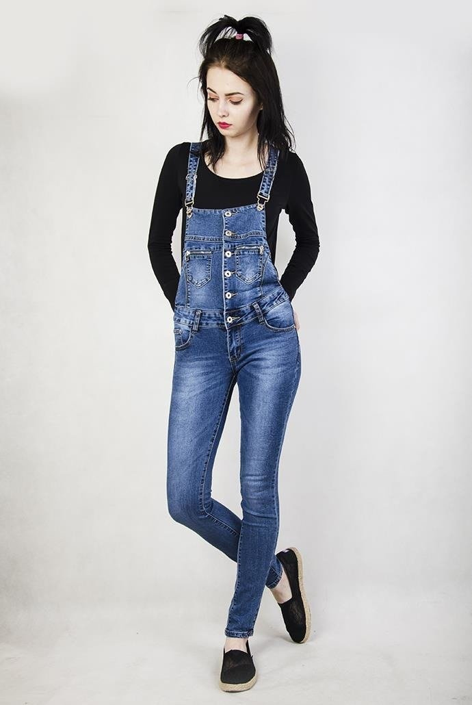 Przylegające ogrodniczki jeansowe z rzędem guzików