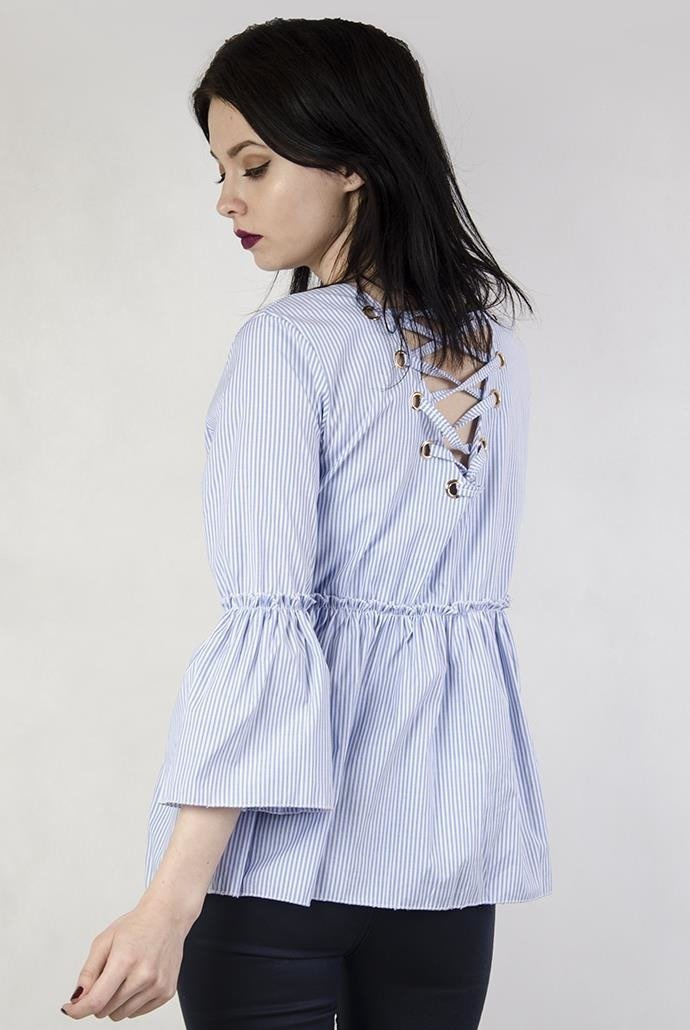 Koszula w paski z szerokim rękawem oraz wiązaniem.