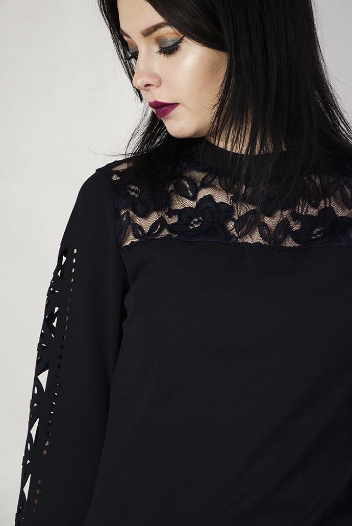 Granatowa bluzka z koronką i wycięciami na rękawach