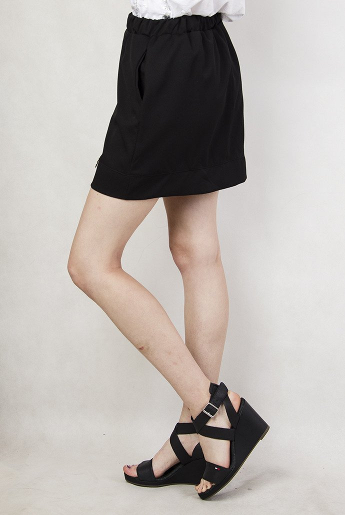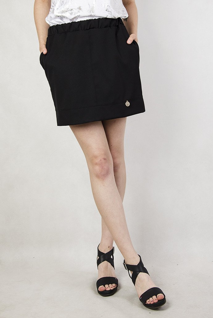 Czarna spódnica z kieszeniami, na gumce. Posiada złote kółko na dole.