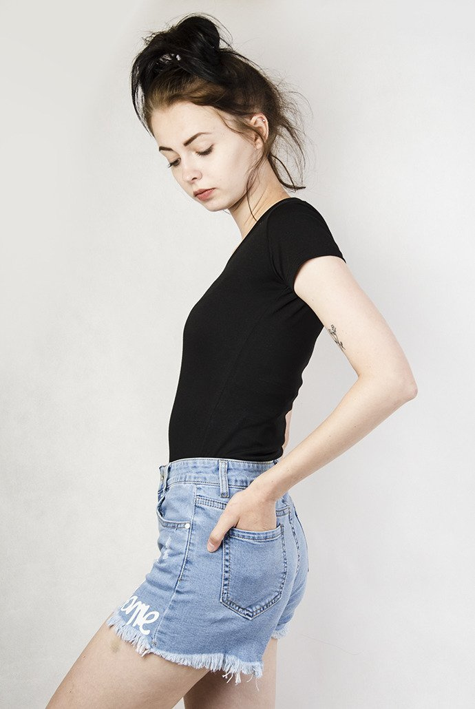 Czarne body z krótkim rękawem. Zapinane na zatrzaski.