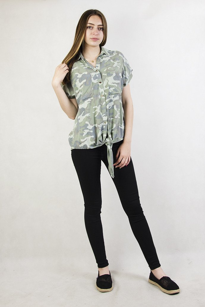 Zielona koszula moro z wiązaniem z przodu