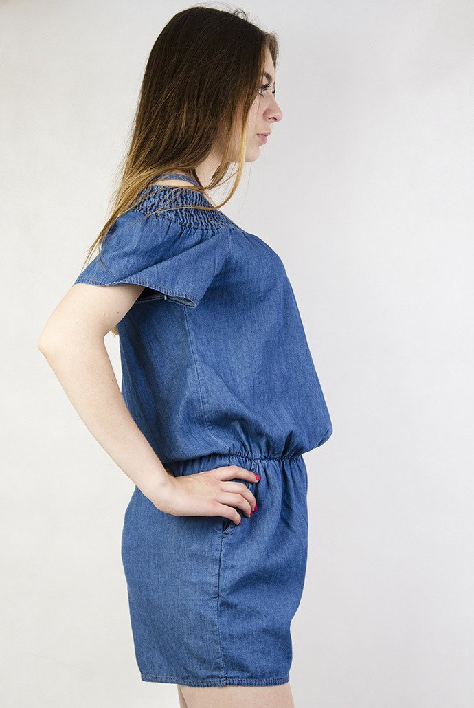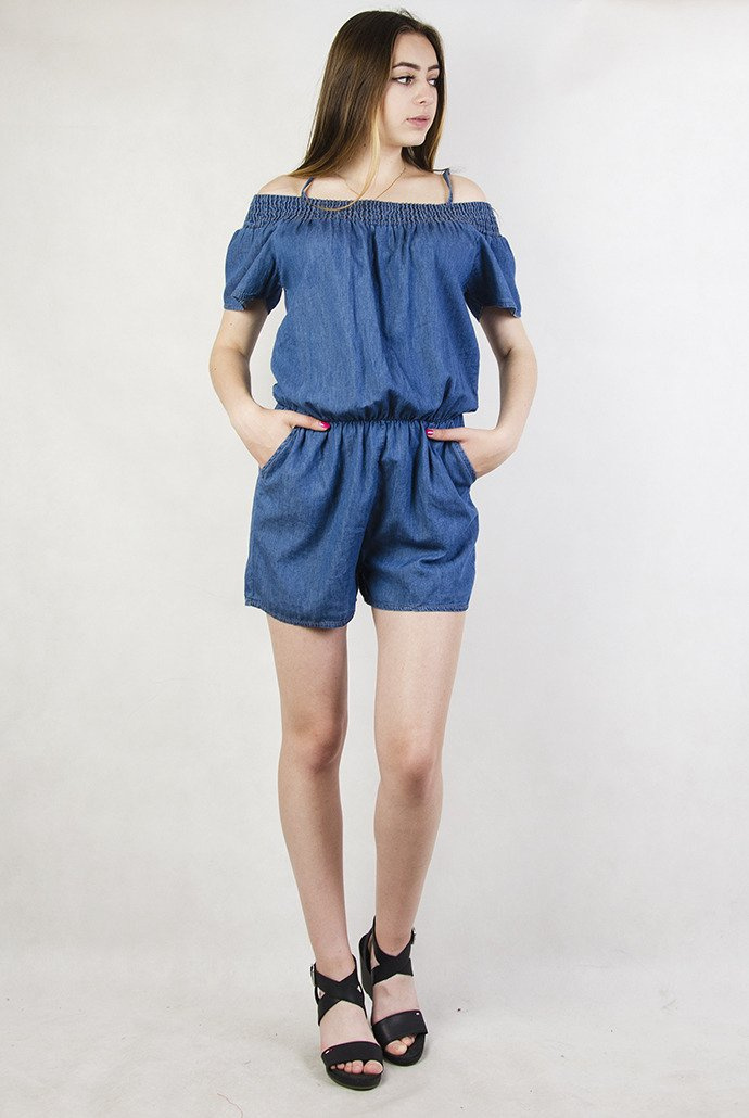 Jeansowy kombinezon z odkrytymi ramionami