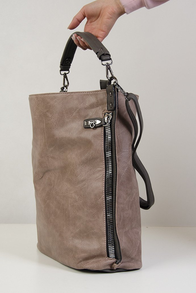 Duża beżowa torebka z ozdobnym zamkiem z boku
