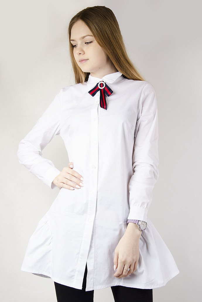 Biała długa koszula  z przypinką, rozszerzana na dole
