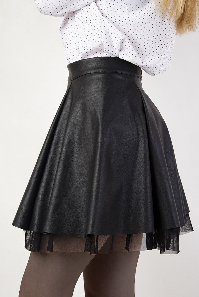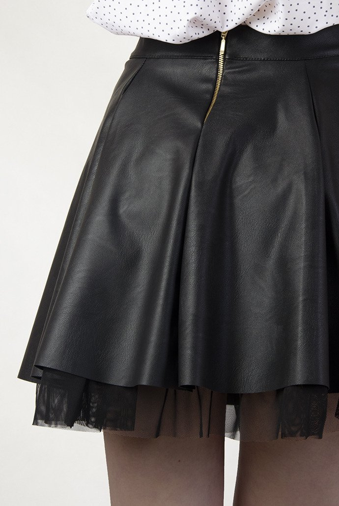 Skórkowa rozkloszowana spódnica w kolorze czarnym z dodatkiem tiulu