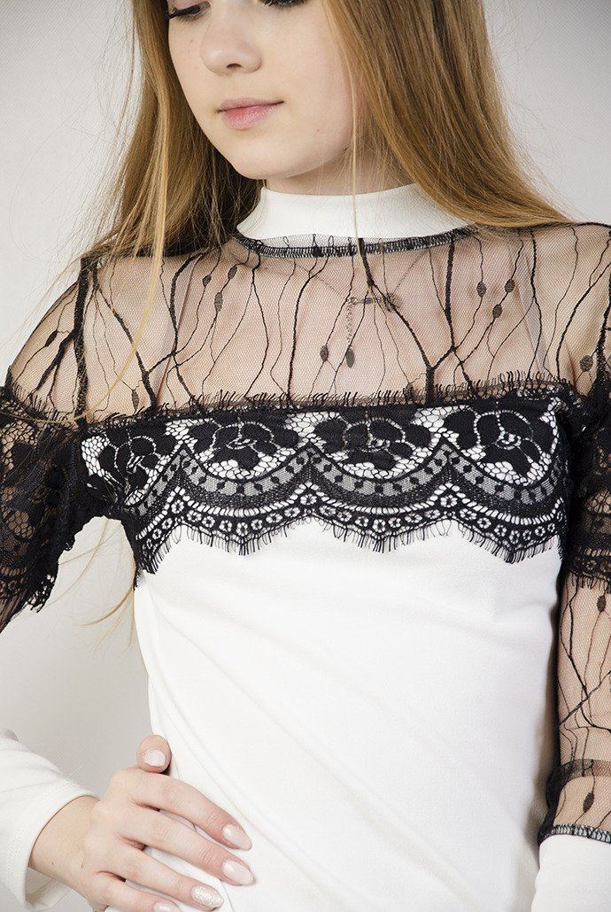 Biała bluzka z czarnymi wstawkami