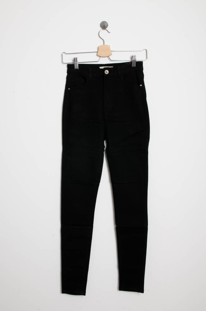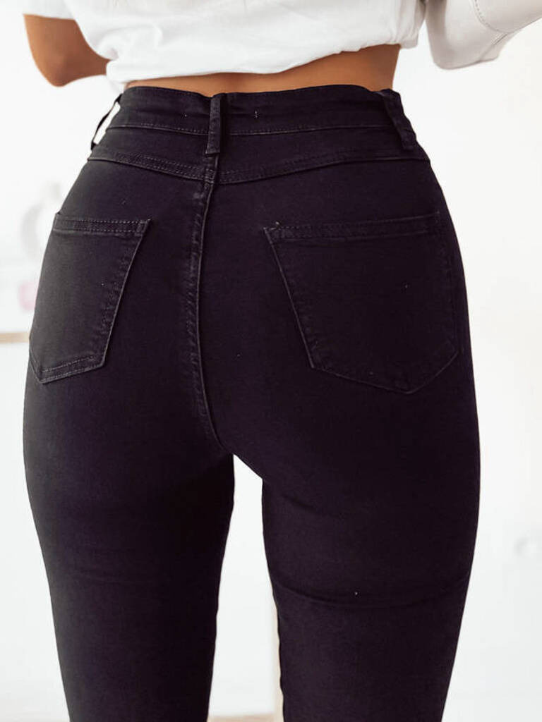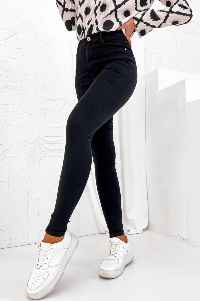 Spodnie wykonane z elastycznego materiału. Bardzo wysoki stan, rozporek na suwak i guzik. Obcisłe nogawki. Spodnie z funkcją stretchu, który trzyma i modeluje talię, uda i pośladki oraz zachowuje kształt spodni.