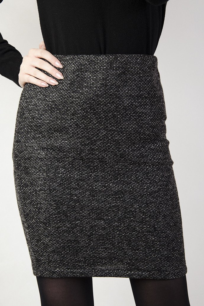 Czarna przylegająca spódnica przeszywana srebrną nicią