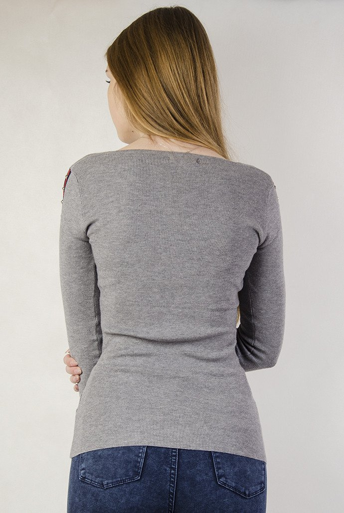 Szara, przylegająca bluzka z ćwiekami u boku