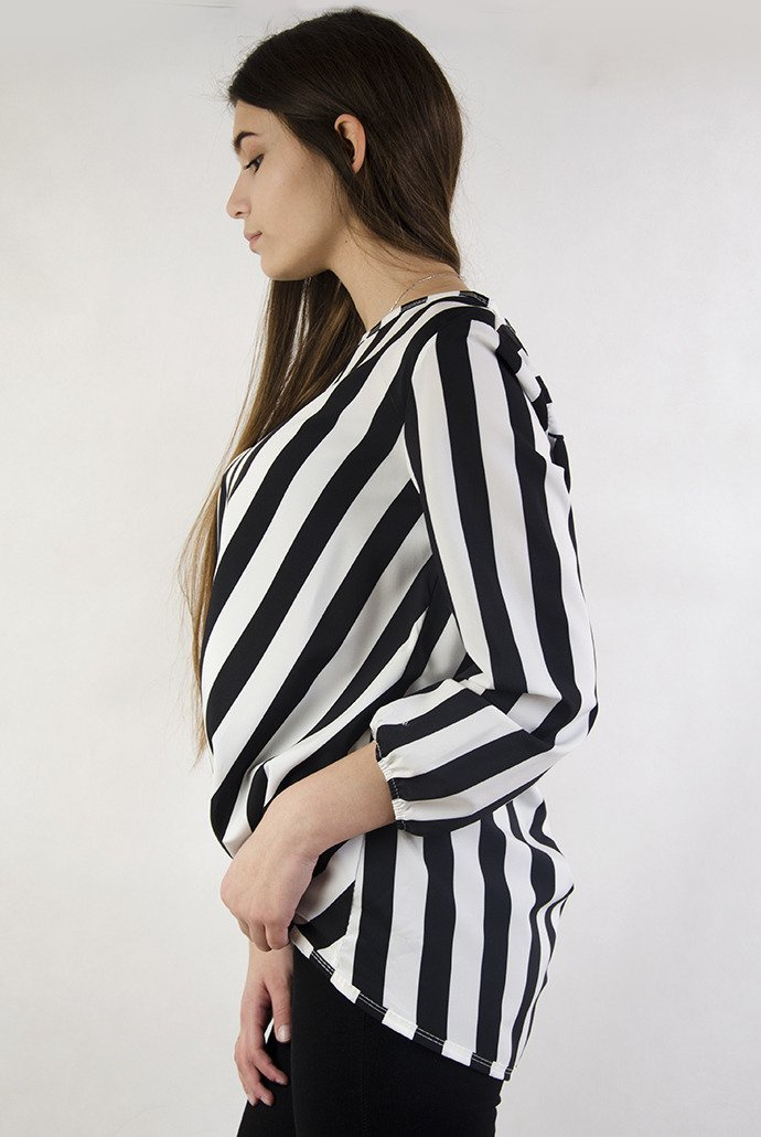 Bluzka w czarno białe pasy z przedłużanym tyłem