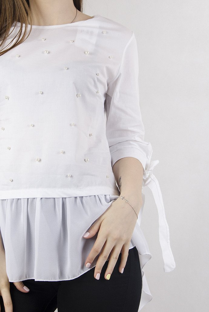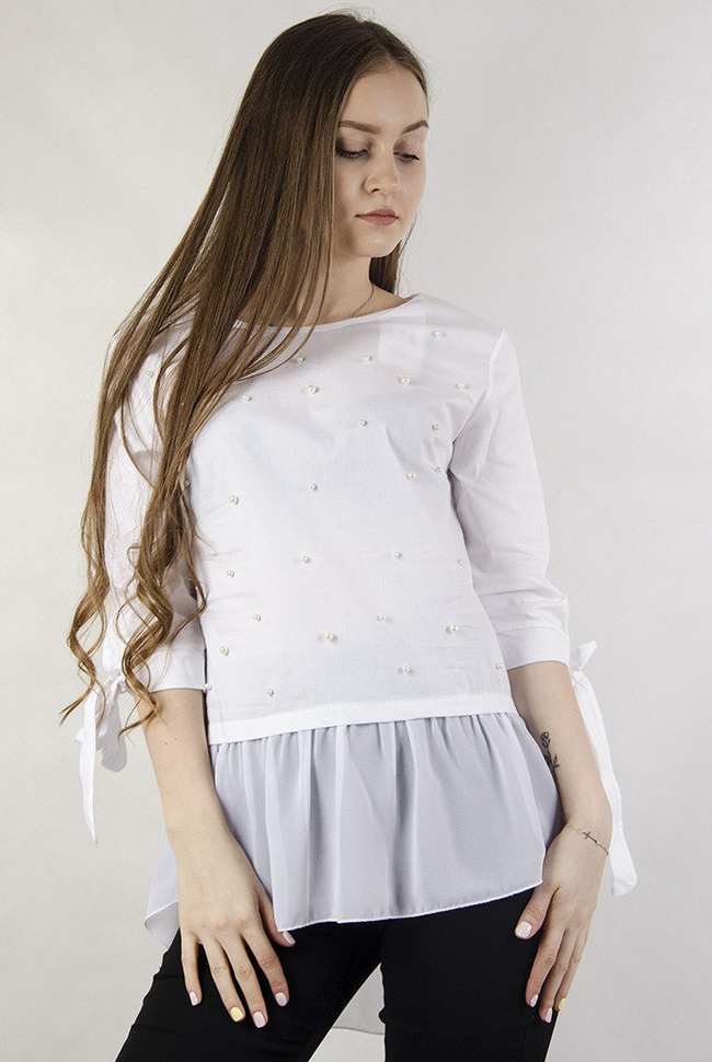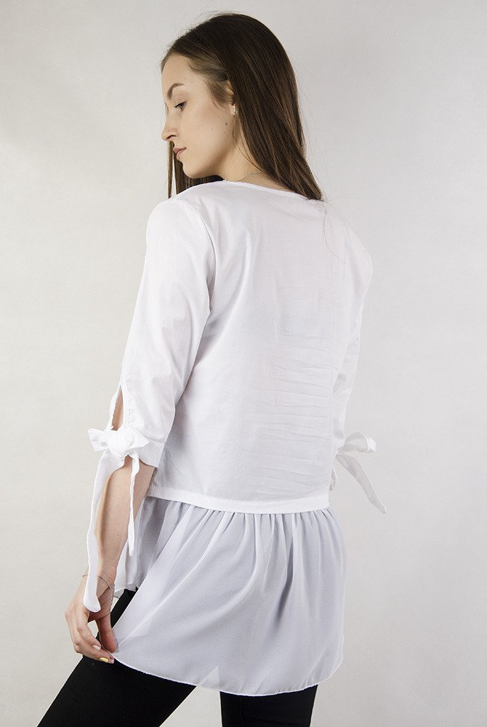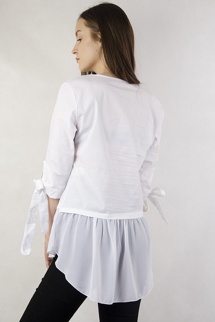 Biała bluzka koszulowa z przedłużeniem z tiulu