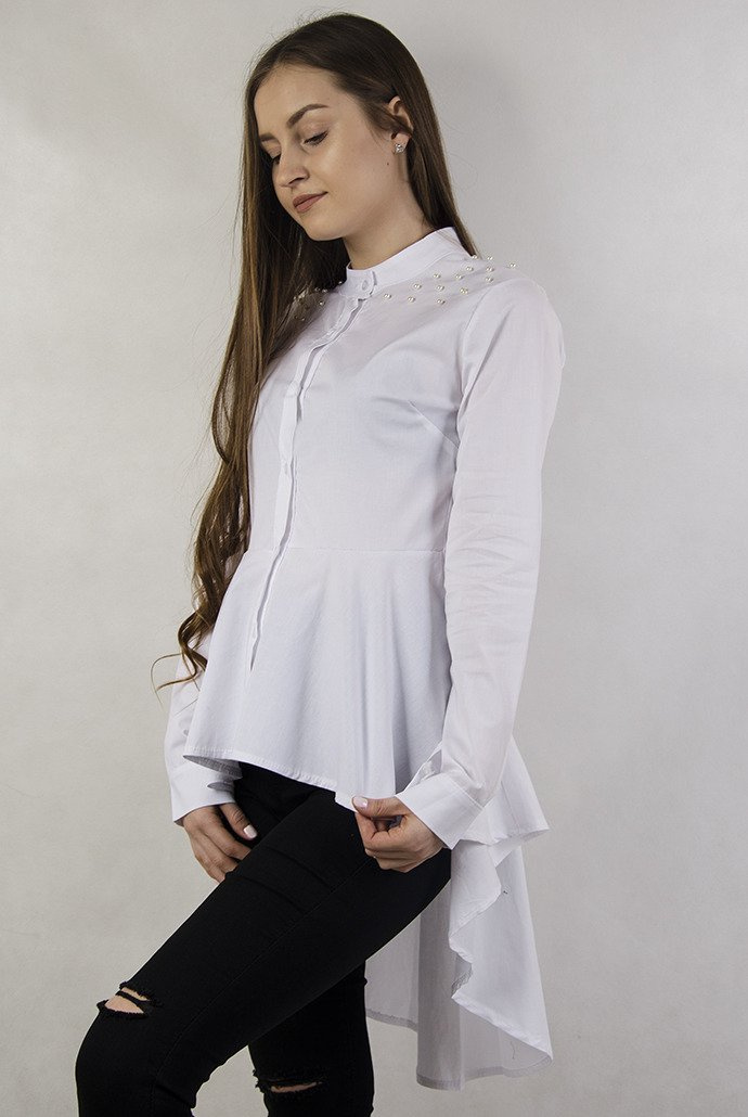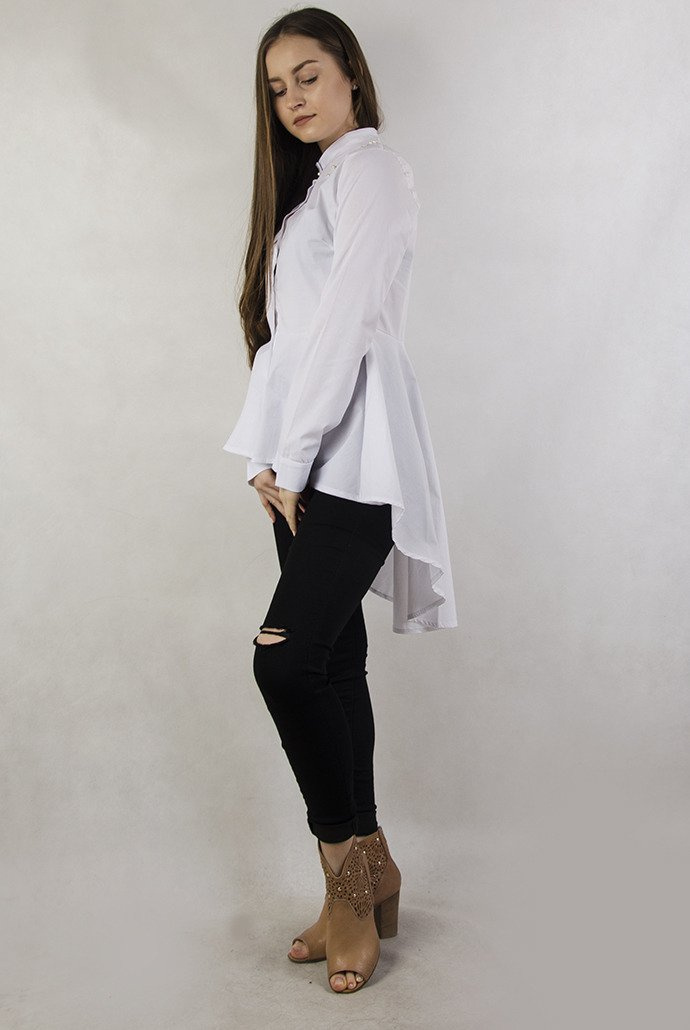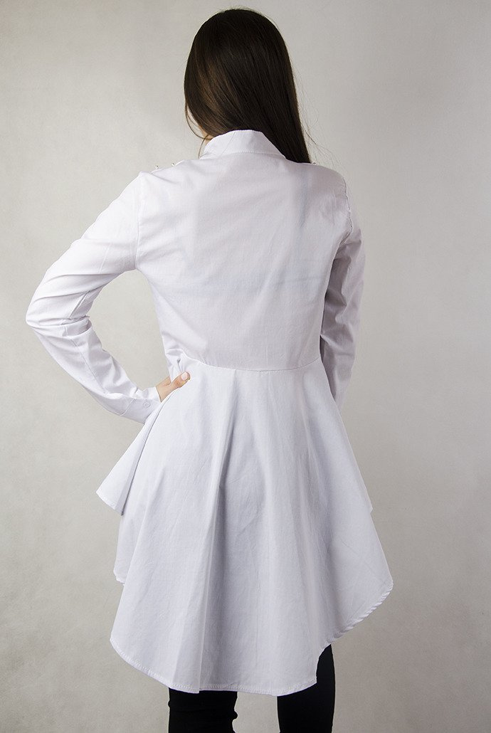 Biała długa koszula z rozkloszowanym dołem