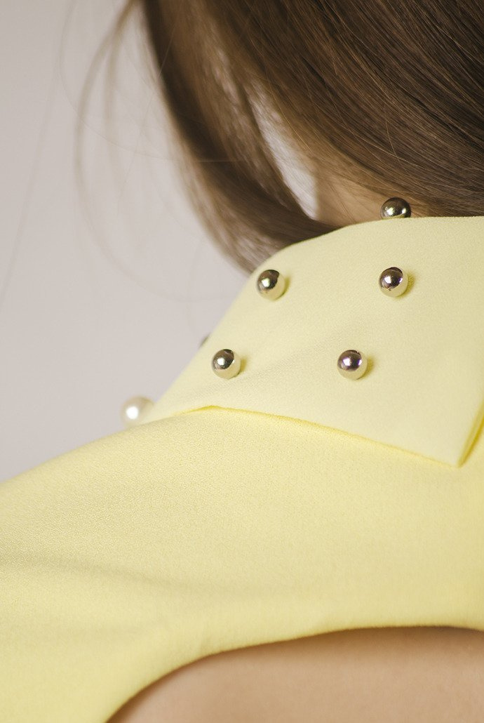 Żółta bluzka z kołnierzem w koraliki