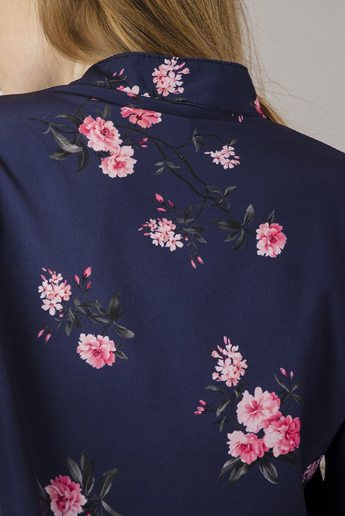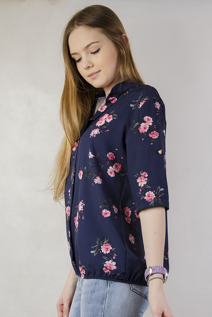 Granatowa bluzka w kwiaty, rękaw 3/4