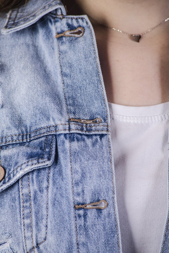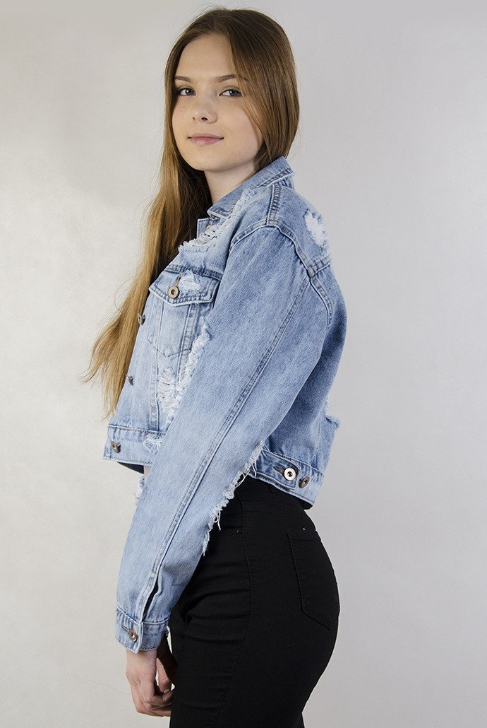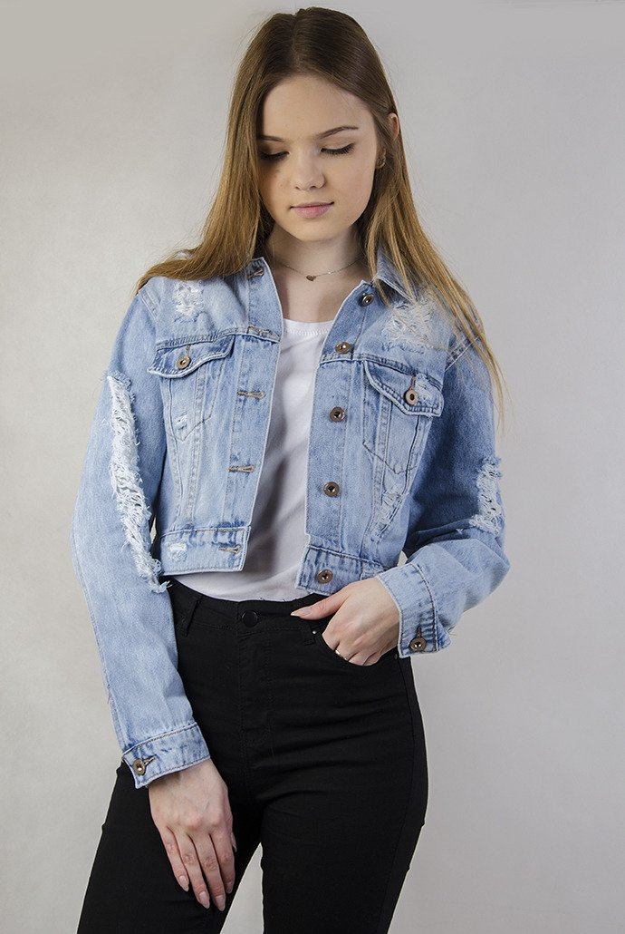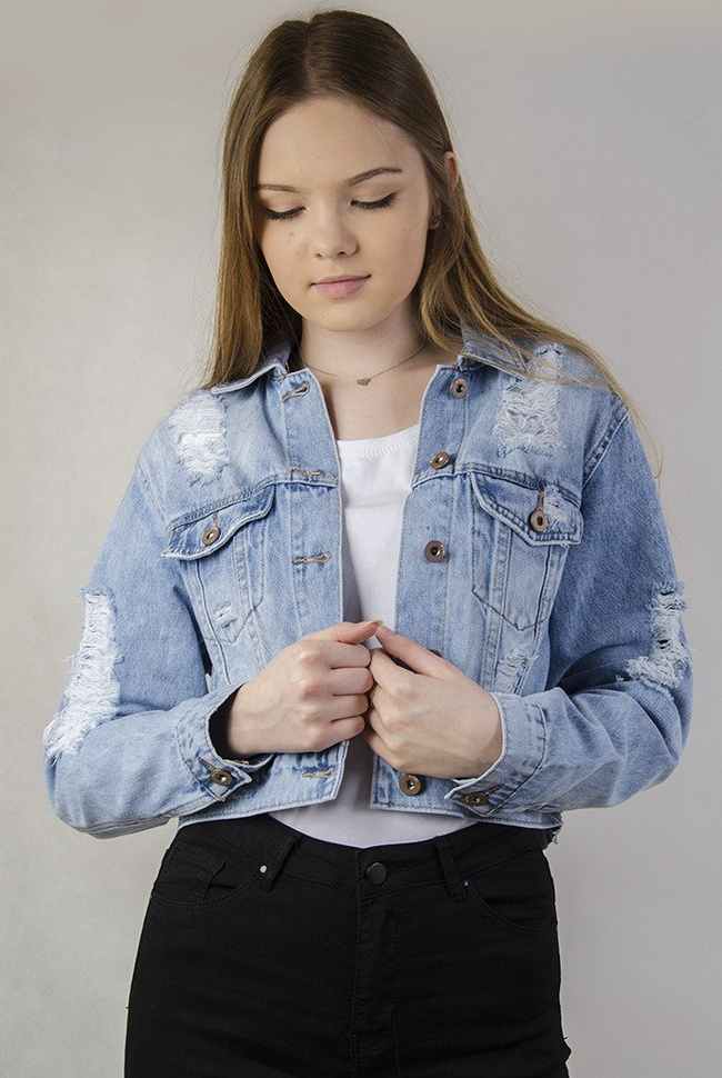 Jasna krótka kurtka jeansowa z dziurami