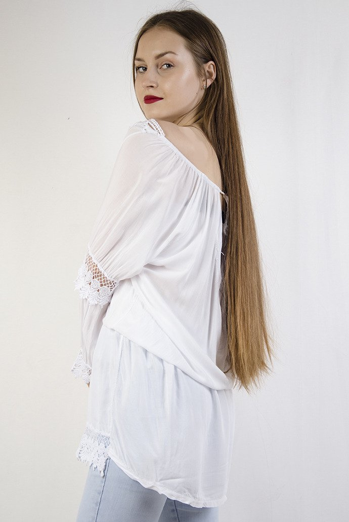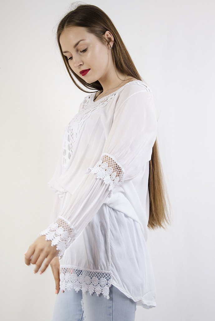Biała zwiewna sukienka z ażurowym wykończeniem
