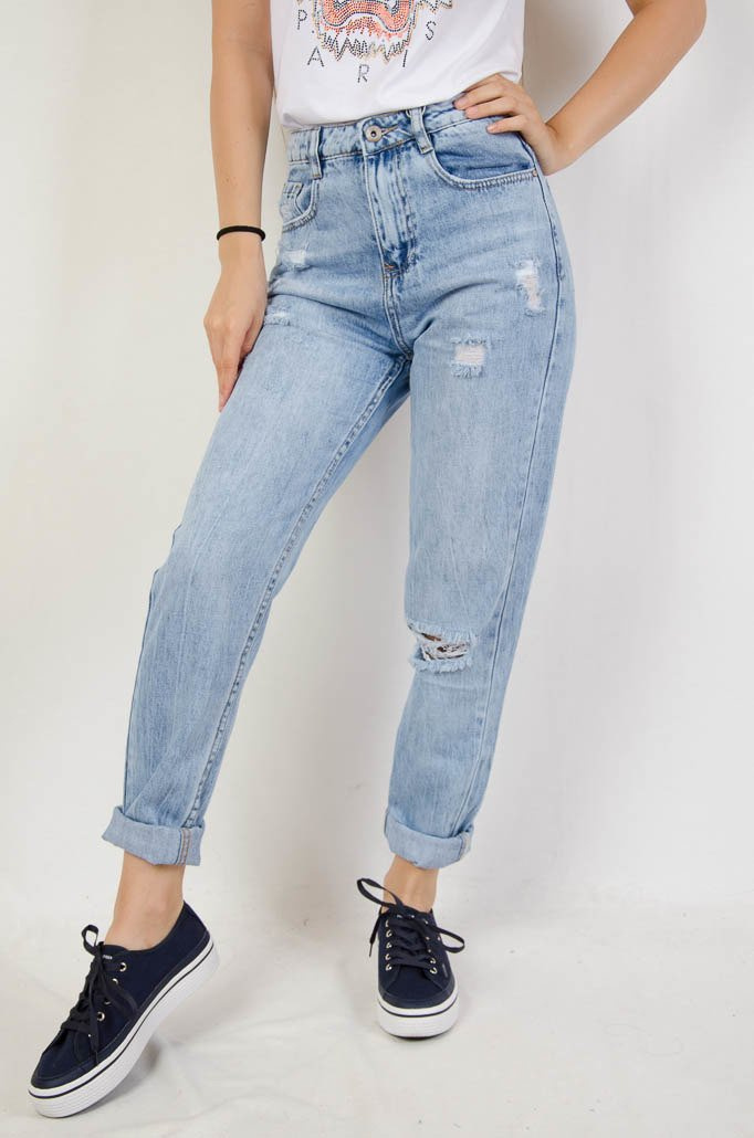 SPODNIE JEANSOWE TYPU BOYFRIEND Z PRZETARCIAMI