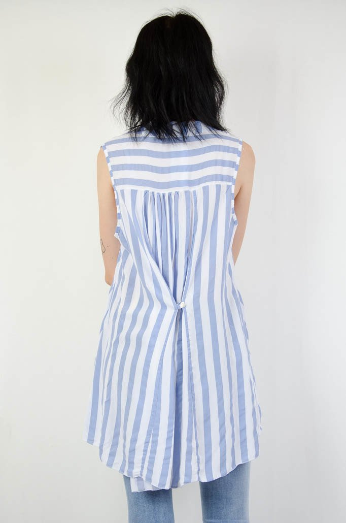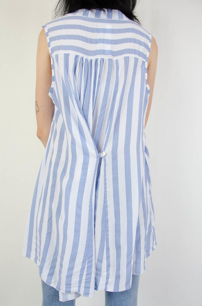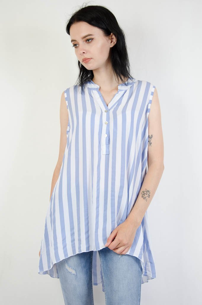 BIAŁO NIEBIESKA PRZEDŁUŻANA BLUZKA W PASKI