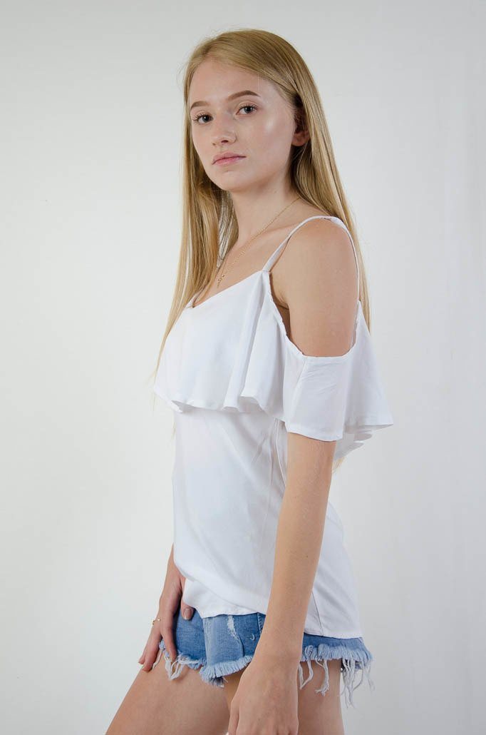 Biała bluzka hiszpanka na cienkich ramiączkach