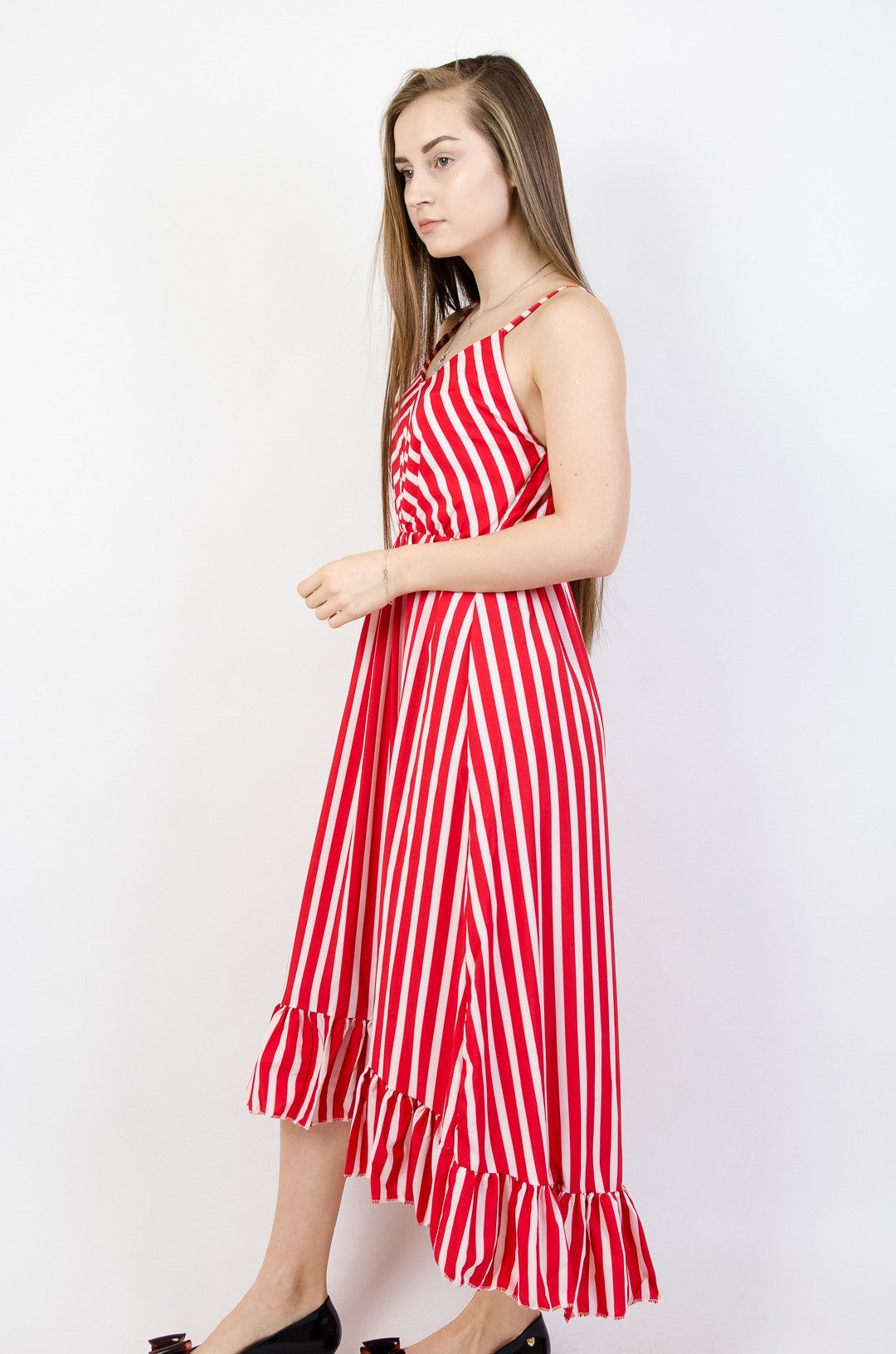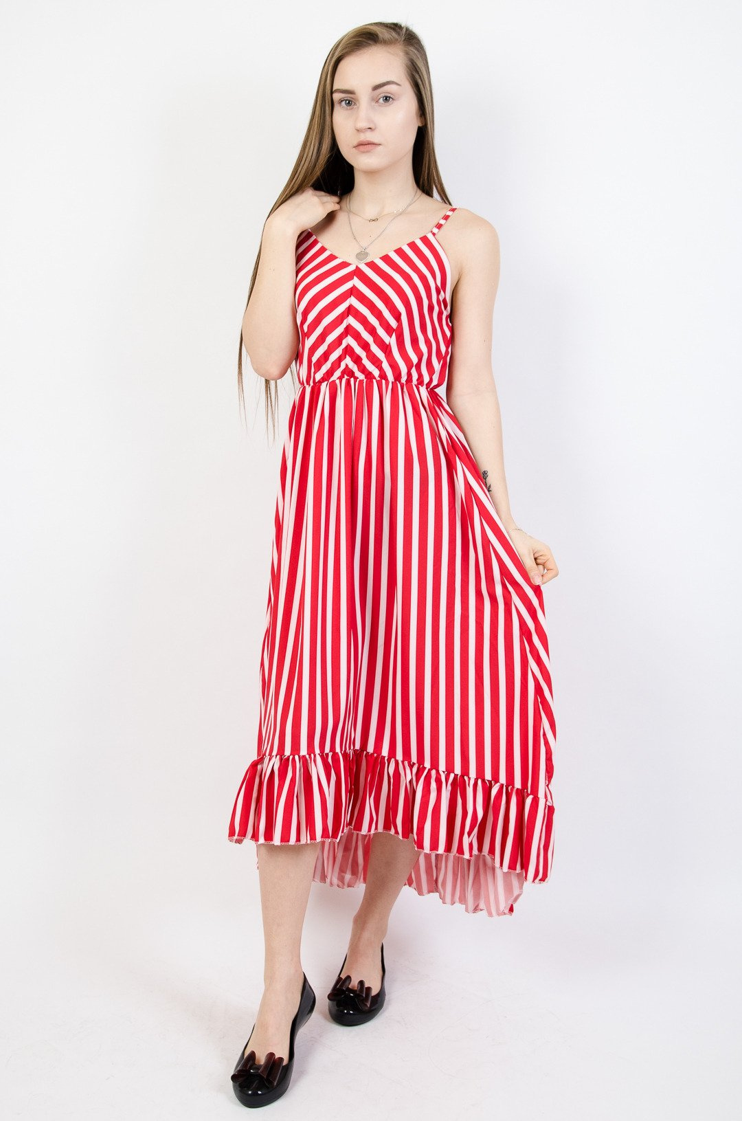 DŁUGA SUKIENKA W BIAŁO CZERWONE PASY