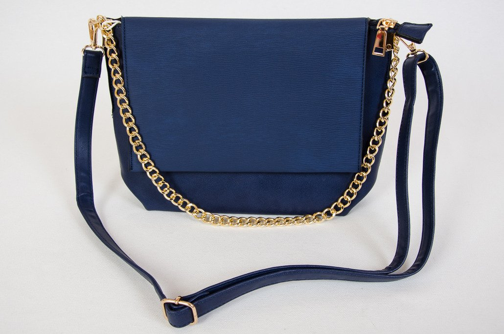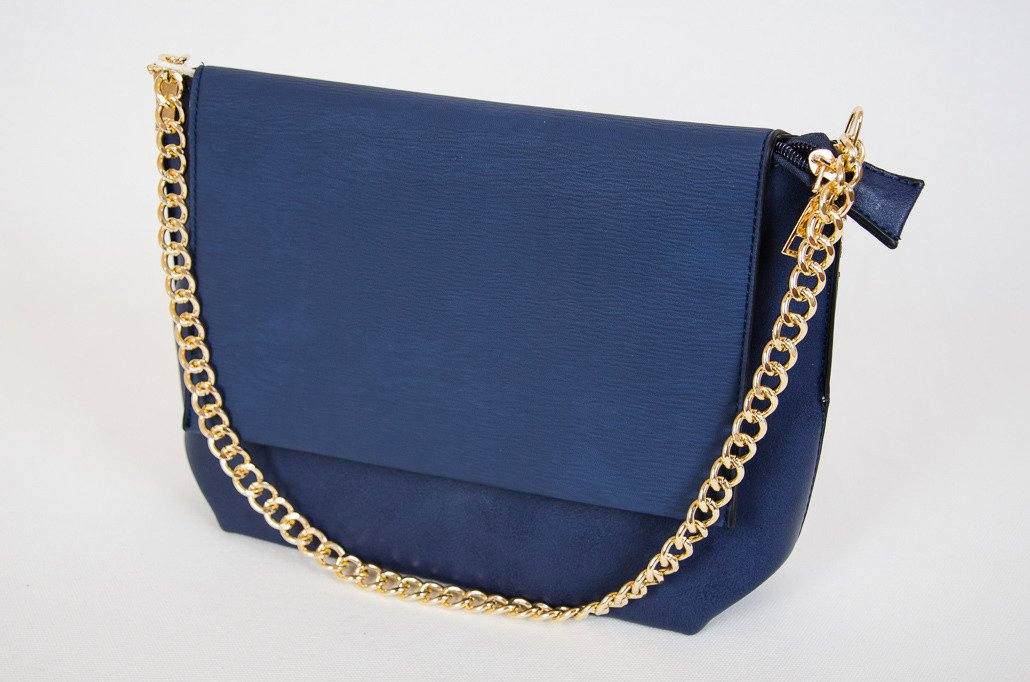 Granatowa kopertowa torebka na złotym łańcuszku
