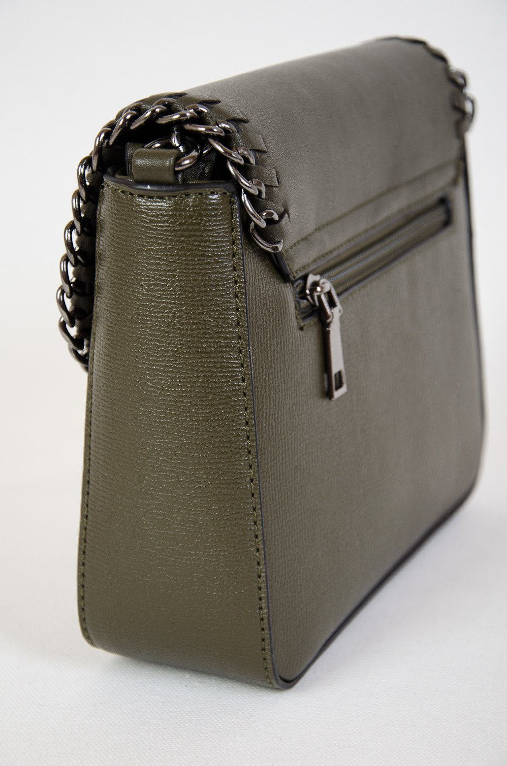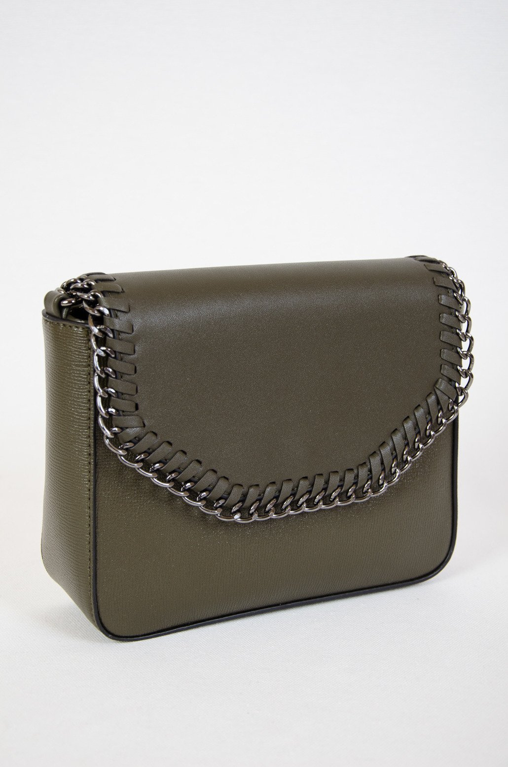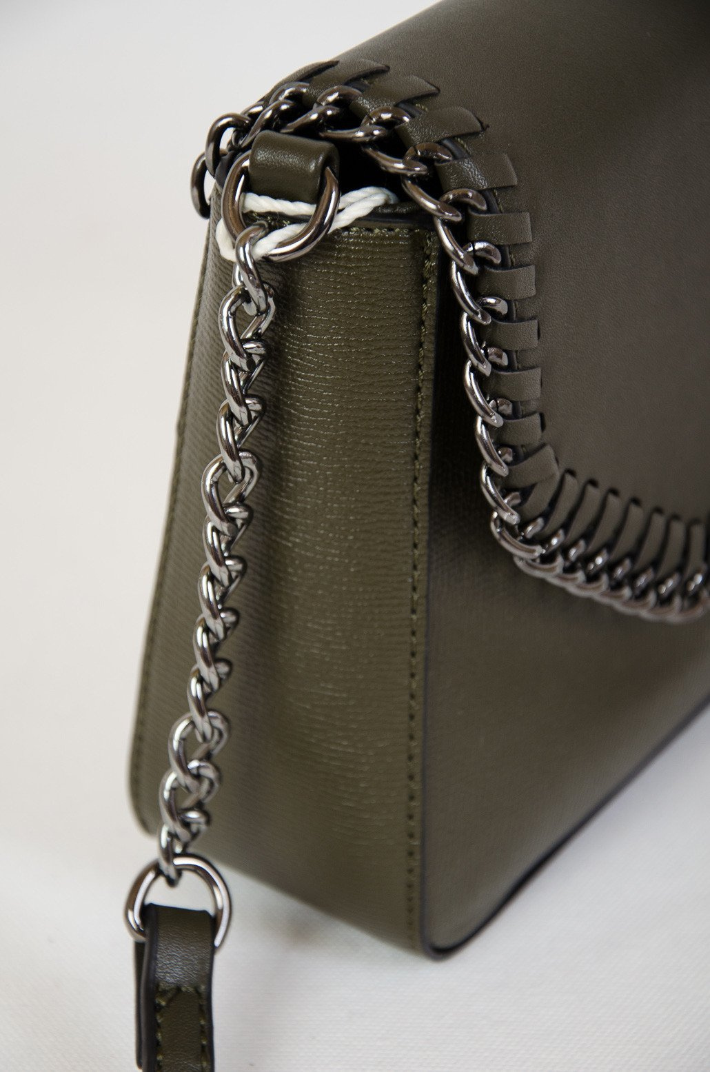 Zielona mała torebka z klapką plecioną łańcuszkiem