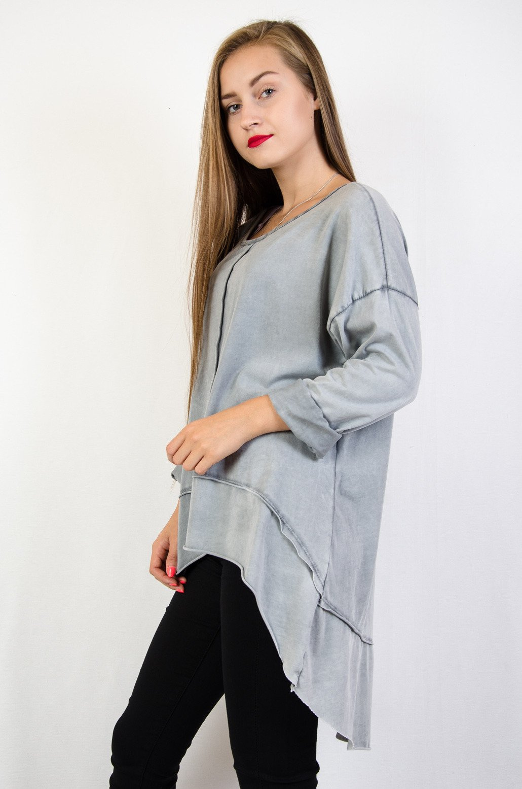 Szara tunika z przedłużanym tyłem