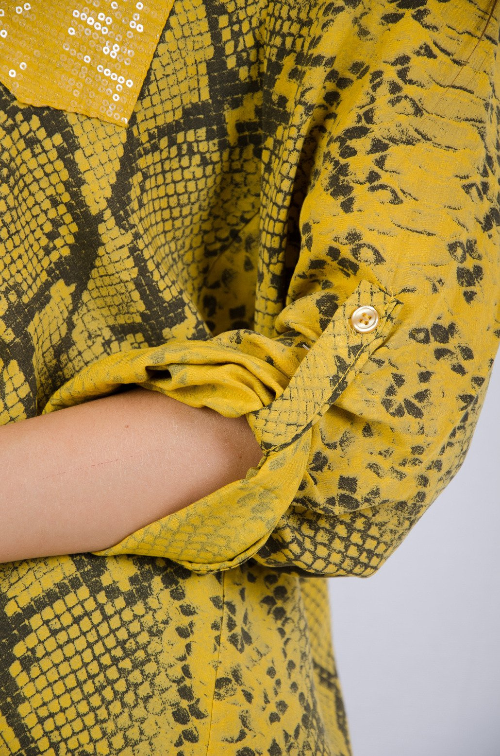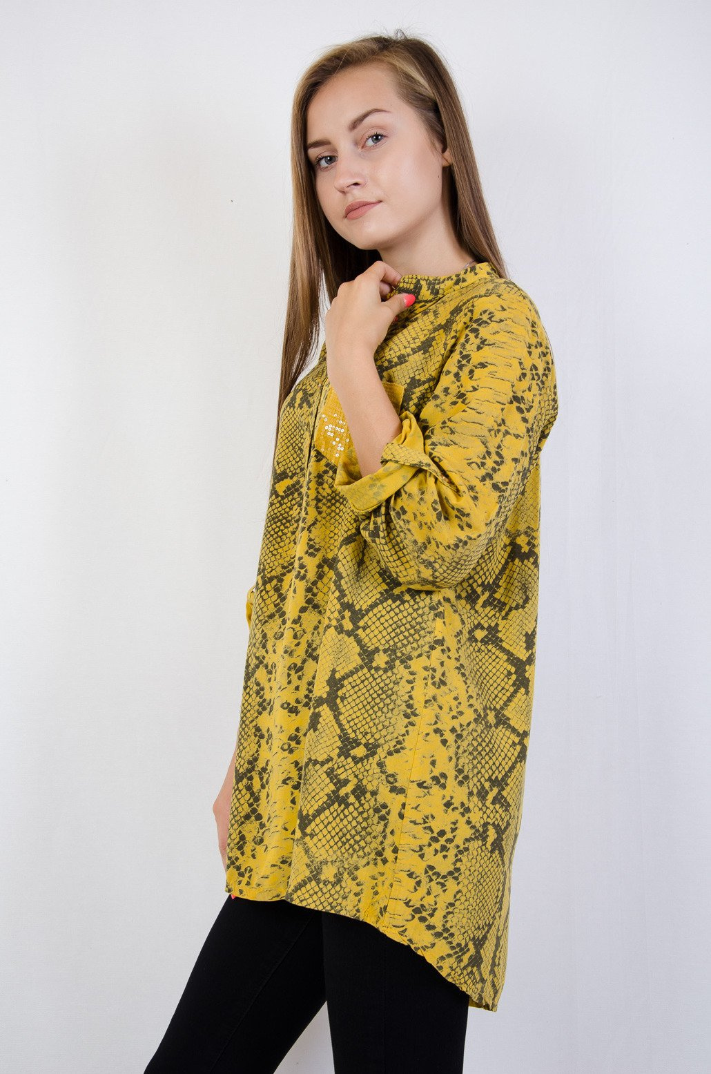 Żółta bluzka koszulowa w wężowy wzór z ozdobną kieszonką
